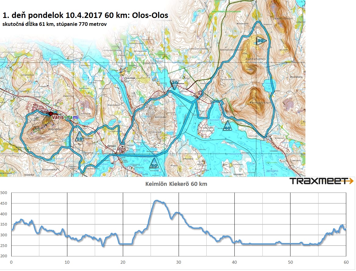 1. deň 10.4.2017, Keimiön kiekierö, 60 km: Olos-Olos