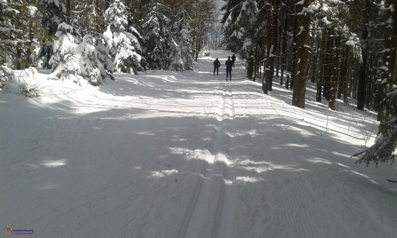 Obut sa da pekne hned od parkoviska. Po par sto metroch je najhorsi usek kde je par cm snehu, resp.zladovateny sneh podmacany vodou ktora vyteka po tazbe z hory. Hore sa to da prejst,dole som radsej vyzul a presiel s bezkami v rukach,lebo tu miestami z podkladu trcia kamene + neda sa vyuzit cela sirka zvaznice,takze brzdenie obtiazne. Od odbocky na hrbocky podmienky dobre az velmi dobre. Sneh vlhky,ale podklad dobre utlaceny. Smerom na tichu padnuty strom krizom cez zvaznicu. Aj dnes prebehla 4kolka s rolbou. Vdaka za upravu