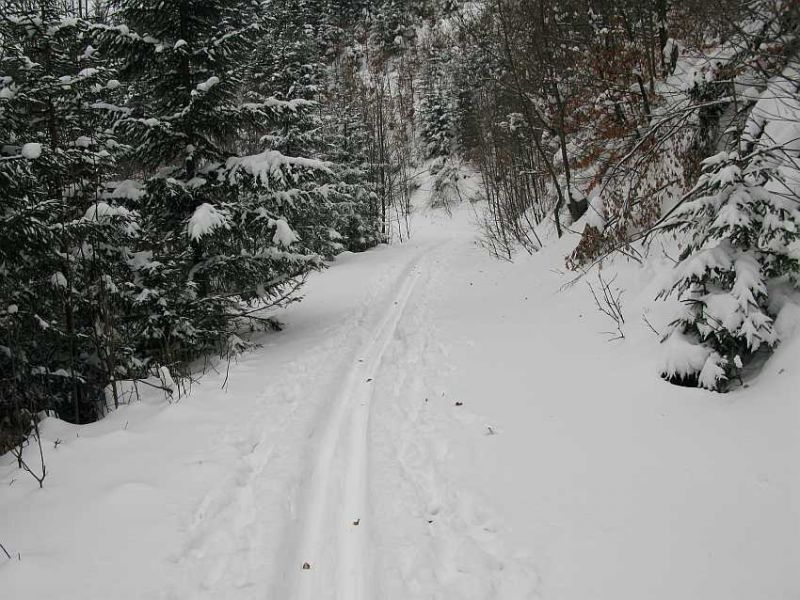 Stav o cca. 13.00hod. Trať je upravená a rozšírená na cca 4m, stopa na klasiku ešte nie je natiahnutá, rozšírené okraje sú mäkšie ako stred.
