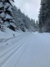 to malo lepší šmrnc, čo po dnešku už bude. pocitová teplota okolo nuly, trochu sa lepí na lyže.je to urobené od stredu dediny, za čo patrí vďaka starostovi.