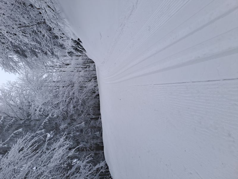 Na zľadovatelom povrchu je vrstva 3-4 cm prachového snehu. Na turistiku obstojné, v klesaniach treba dať pozor, spodná zľadovatená vrstva môže byť nerovná, hrboľatá, riskantné pluhovanie.