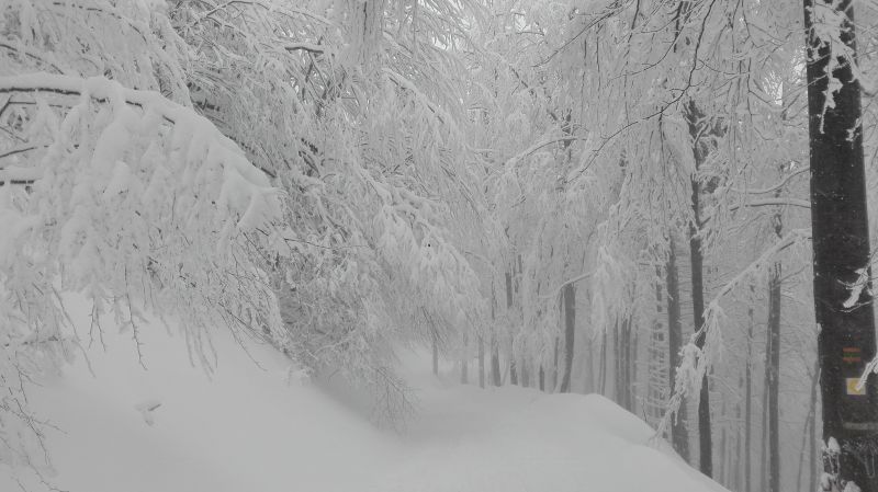 Ako píše Maťo pár správ predo mnou, Romanova úprava z rána (o 8:07 sa otáčal na začiatku Kordíckej zvážnice) bola dnes len kozmetickou úpravou, keďže kydalo ako o život až do cca 14,00. Boli sme popoludní, boli sme sa vyslovene iba nadýchať, vyvetrať sa a vychutnať si tú fantastickú zimnú nádheru, aká sa vyskytne na pohľad raz-dvakrát za sezónu.