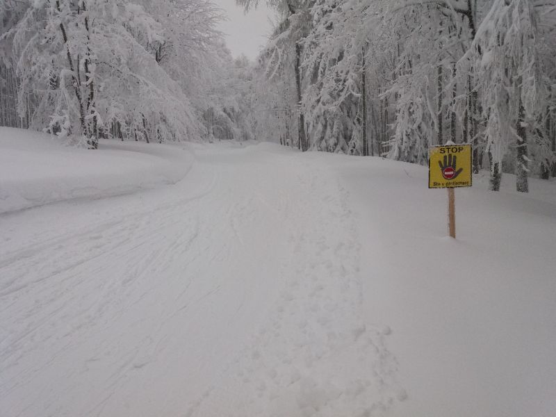 Od Jahodnej do cca polovice cesty na Lajošku sú pod snehom skryté kamene treba dávať pozor. Chýba tam snehový základ. Ďalej je cesta bez problémov. Od Lajošky je snehu dostatok super podmienky na turistické bezkovanie s prešlapanou stopu.