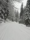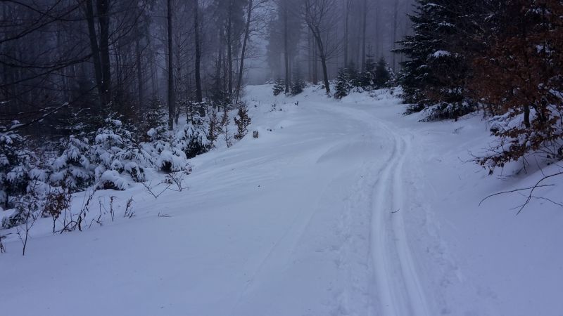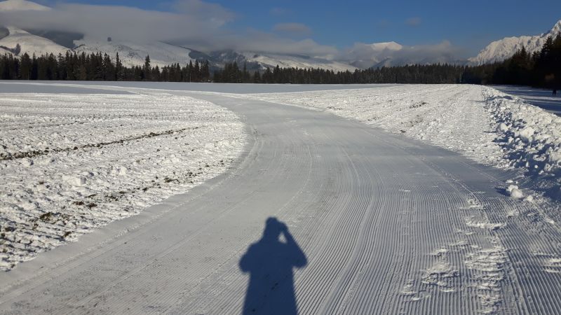 Ráno som bol pod mostíkmi po úprave prvý na trati, krása. Postupne bežkárov pribúdalo. Napadlo cca 15 cm prašanu a bol krásne upravený. Na CT ideálne, na FT sa to hlavne v stúpaniach prebáralo. Musí sa to vybehať a vymrznúť. Ako vidno na fotke z rázcestia v Tichej, upravená je aj Kordícka zvážnica.