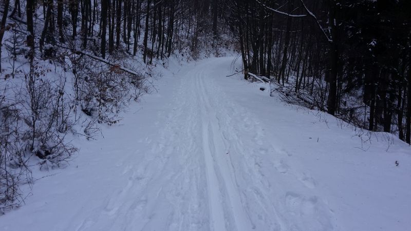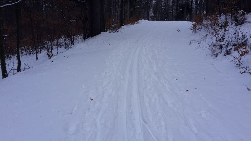 Dnes ráno 7:30. Na ešte nedeľnú snehovú "nádielku" vtedy nabehli peší turisti i bežci a utlačili sneh, čím sa vytvorili podmienky aj pre bežkovanie. Nie je to žiadna sláva (ako sa môžeme dočítať v správach z iných stredísk), ale vzhľadom na to, že je to prakticky v meste, treba využiť, kým to ide. Možno to vydrží iba niekoľko dní... Na CT je stopa nevýrazná, niekde zaniká, pre nedostatok snehu. FT sa dá, len povrch je až príliš tvrdý a niekedy sa lyže vedú kostrbatejšie. Ale i napriek tomu sa dá slušne zabehať. Je potrebná zvýšená ohľaduplnosť, pretože frekvencia peších turistov, psov, bežcov i bežkárov je v tomto prímestskom parku pomerne vysoká. (hlavne popoludní a cez víkend)