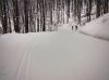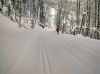 Z Kavečian od kaplnky na Hrešnú, na začiatku na poli vyfúkaný sneh, ale potom vyššie už výborné podmienky. Nový poprašok na tvrdom podklade - rýchle, ale ovládateľné. Dal som okruh a potom od smerovníka k lesnej škôlke výborný 7 minútový zjazd, ďalej zvažnicou vľavo k zelenej značke. Dá sa pokračovať ďalej aj po zelenej, ale tam zvyknú byť kamene potom dole, tak radšej pokračujem rovno, jeden prudší úsek a popri potôčiku vychádzam pri zastávke MHD. Výborná bežkovačka.