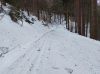 Z Jahodnej po malom okruhu popod vedenie a potom lesnou cestou dole na Potoky a popri potoku hore skoro až na Železný vrch. Cesta odhrnutá (foto), dobre sa na nej aj korčulovalo. Chcel som pokračovať po žltej ja Lajošku, no po pár metroch v hlbokom snehu (asi 30 cm) sám bez stopy som to vzdal a spustil sa dole k cyklochodníku a po ňom hore na starú židovskú a na Jahodnú. Potom po žltej na KVP - bežecká stopa asi na 90%-ách zničená, pošliapaná chodcami.