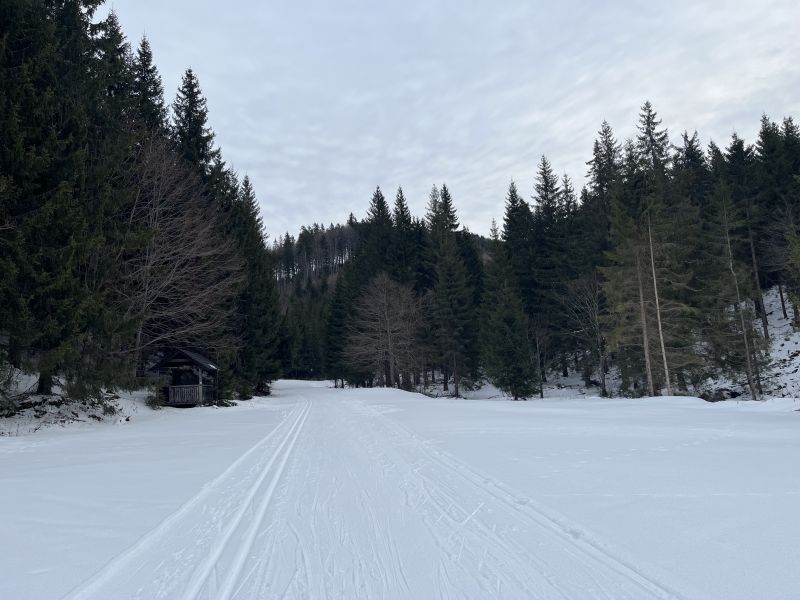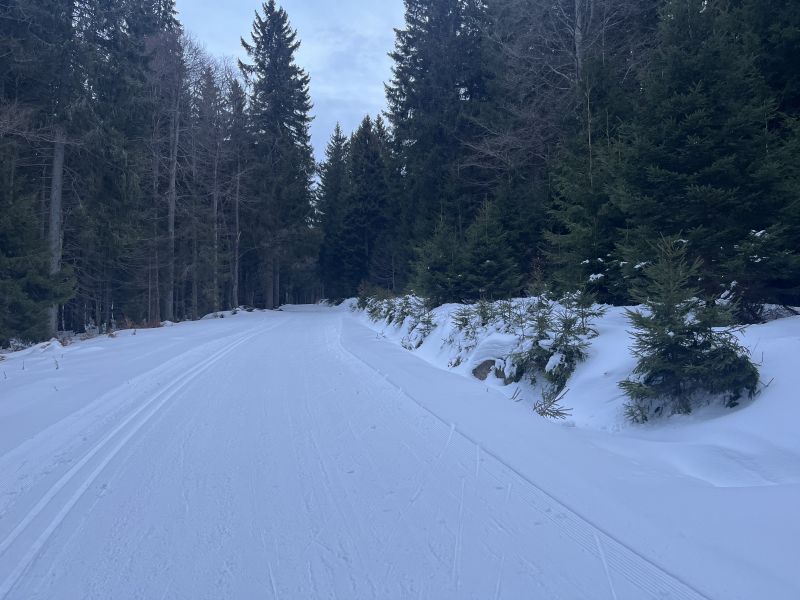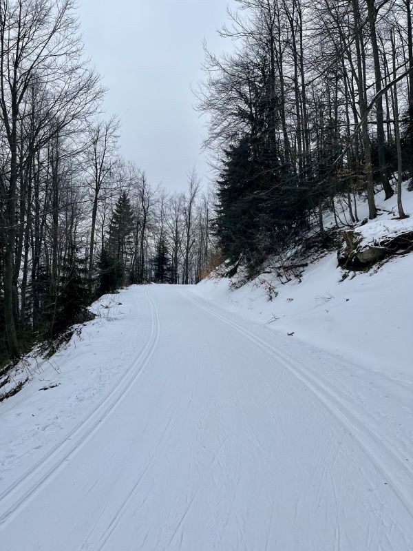 Upravená Kordícka zvážnica od odbočky na Hrbočky. Od parkoviska 900 m preniesť bežky a potom je to veľmi dobré.