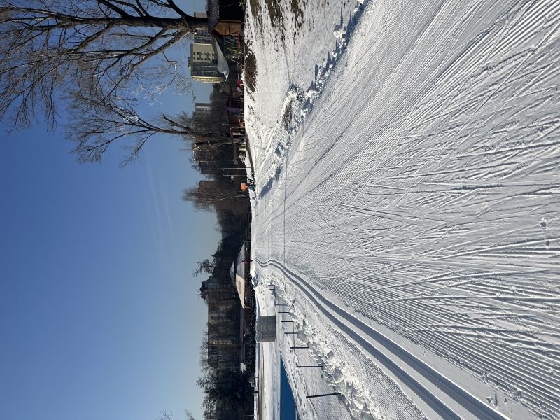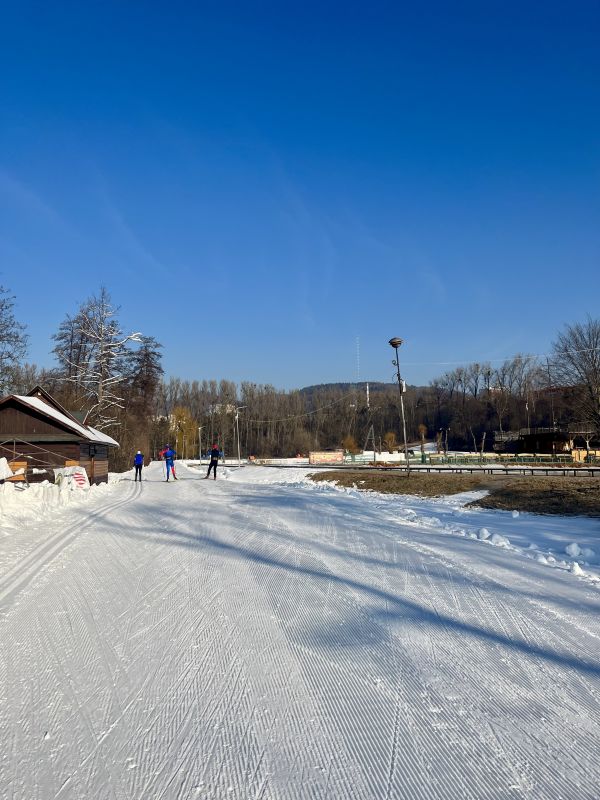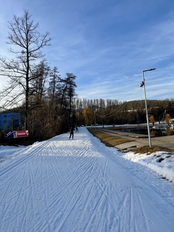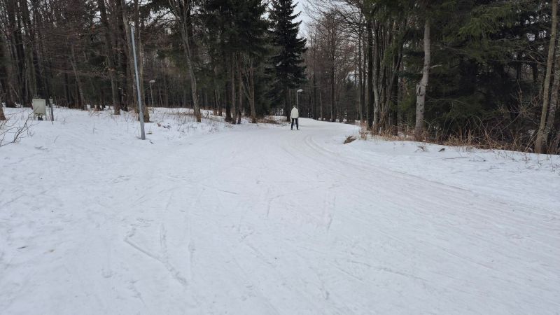 Prekvapivo cely kilometrový okruh stale dobre drzi a podmienky su velmi dobre. Samozrejme dobre podmienky su tak do desiatej a potom vecer po 18:00, ked to zacina primrzat, cez den je to pri tychto teplotách mokre. Dnes rano pomerne vela ludi, ale pri takych podmienkach to nie je ani prekvapive.