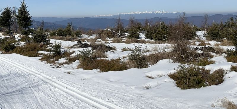 Upravená aj horná 5- ka cez Bystrické sedlo. Na Kiaroch podmienky veľmi dobré, od konca in- line po Bystricke sedlo mierne obmedzené. Ale na tieto snehové suchoty až nečakane dobré podmienky. A navyše krásne počasie.
