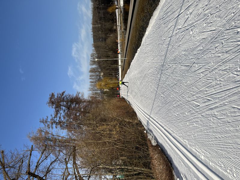 Trate sú ešte stále v dobrej kondícii. Veľmi pomohlo piatkové sneženie, no hlavne sobotná úprava (Ďakujeme orsi). Dnes predpoludním boli typické jarné podmienky. Ráno trochu primrznuté, smerom k poludniu slnecné úseky mäkkšie i pomalšie, asi na dvoch miestach vykukla tráva.