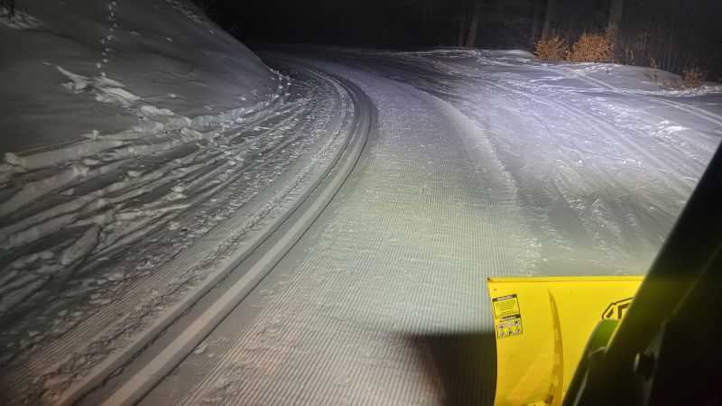 Dnes dosnezeny cely km okruh s vrstvou snehu od 30 do 60 cm snehu. Vsetky 3 snežné dela pracovali naplno za ideálnej teplote -10 a nizkej vlhkosti. Ratrak niekoľkokrát utlacil cely okruh, takze podmienky velmi dobre, oplati sa ist :).